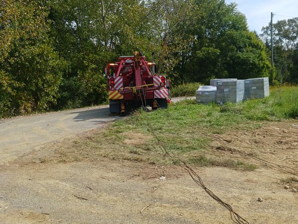 Up righting 19,000 pound machine. Helping small businesses over come devastating issues. As a Community we go.