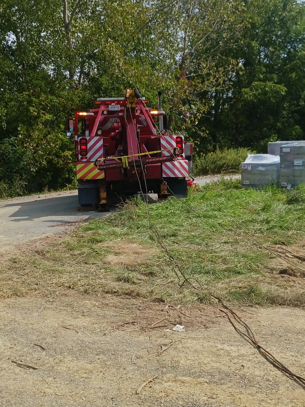 Recovery of truck from the renters front lawns in the mud.